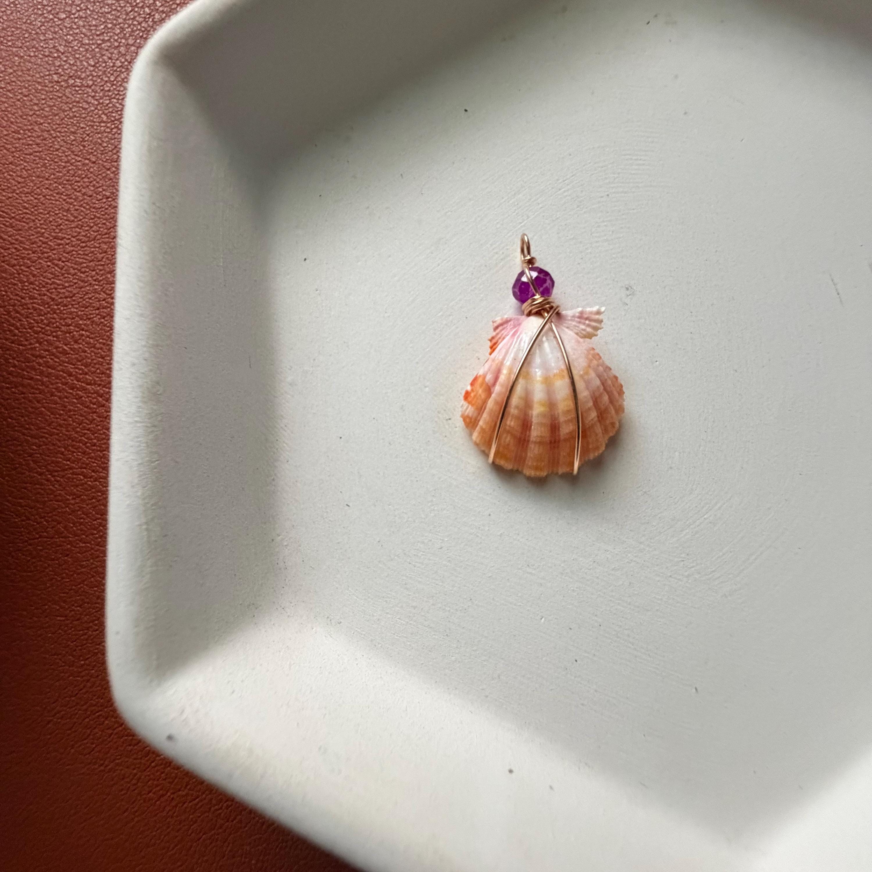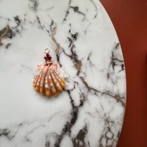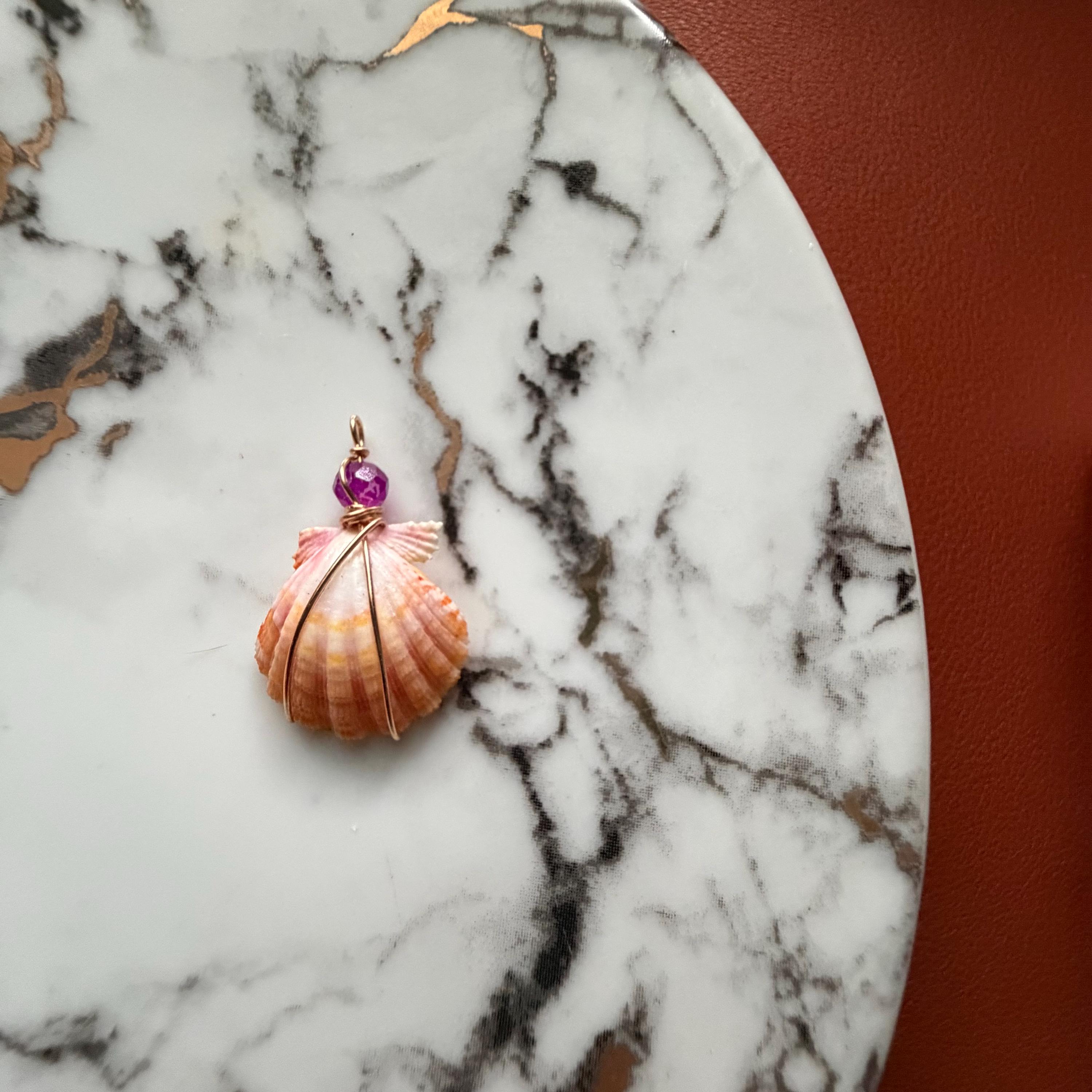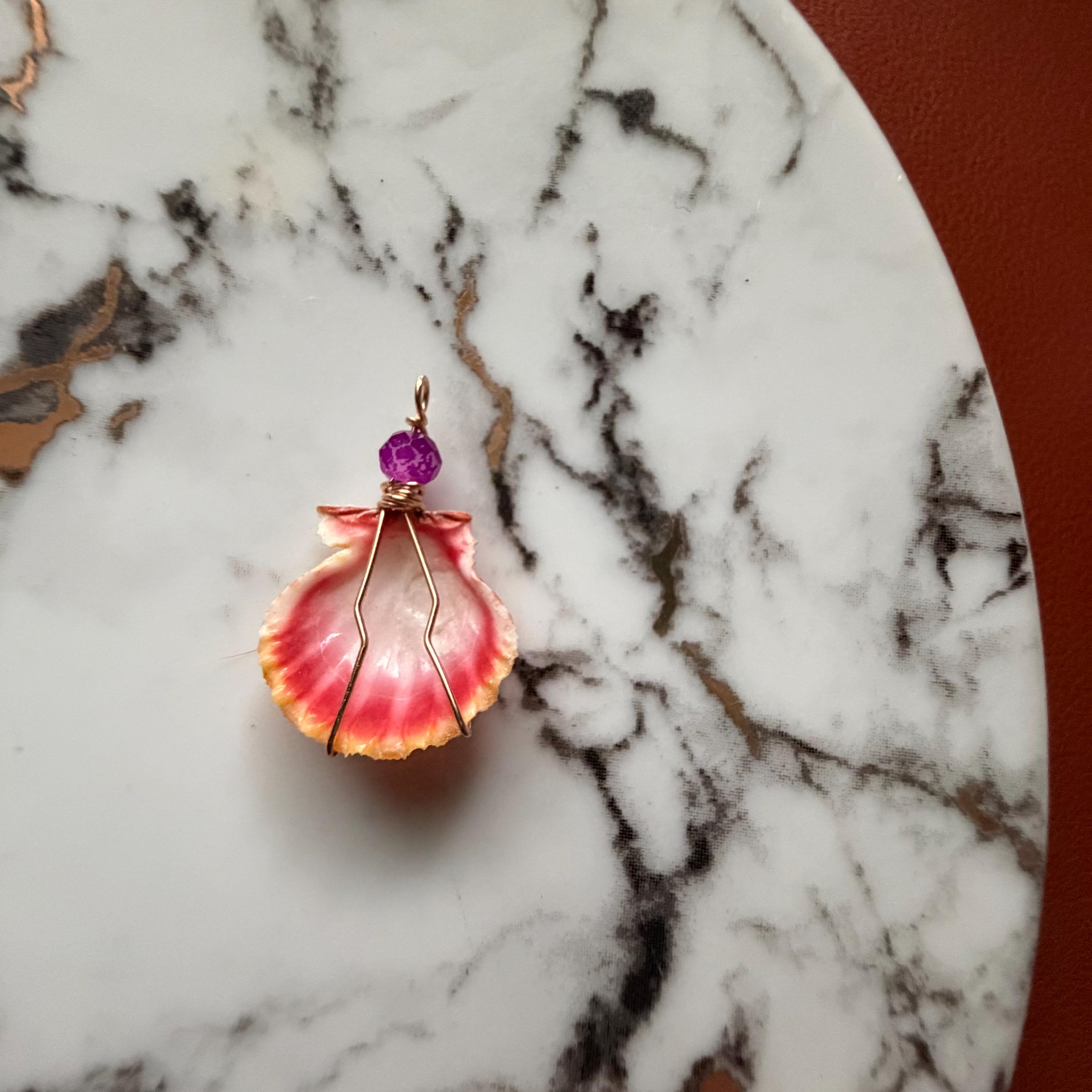 Waikiki Sunrise shell necklace with a simple pink accent. Sunrise shell is Nickel Size and is set in 14k Gold Filled. Can be bought as a necklace or pendant alone. This item is one of a kind contact me for personal pieces!
