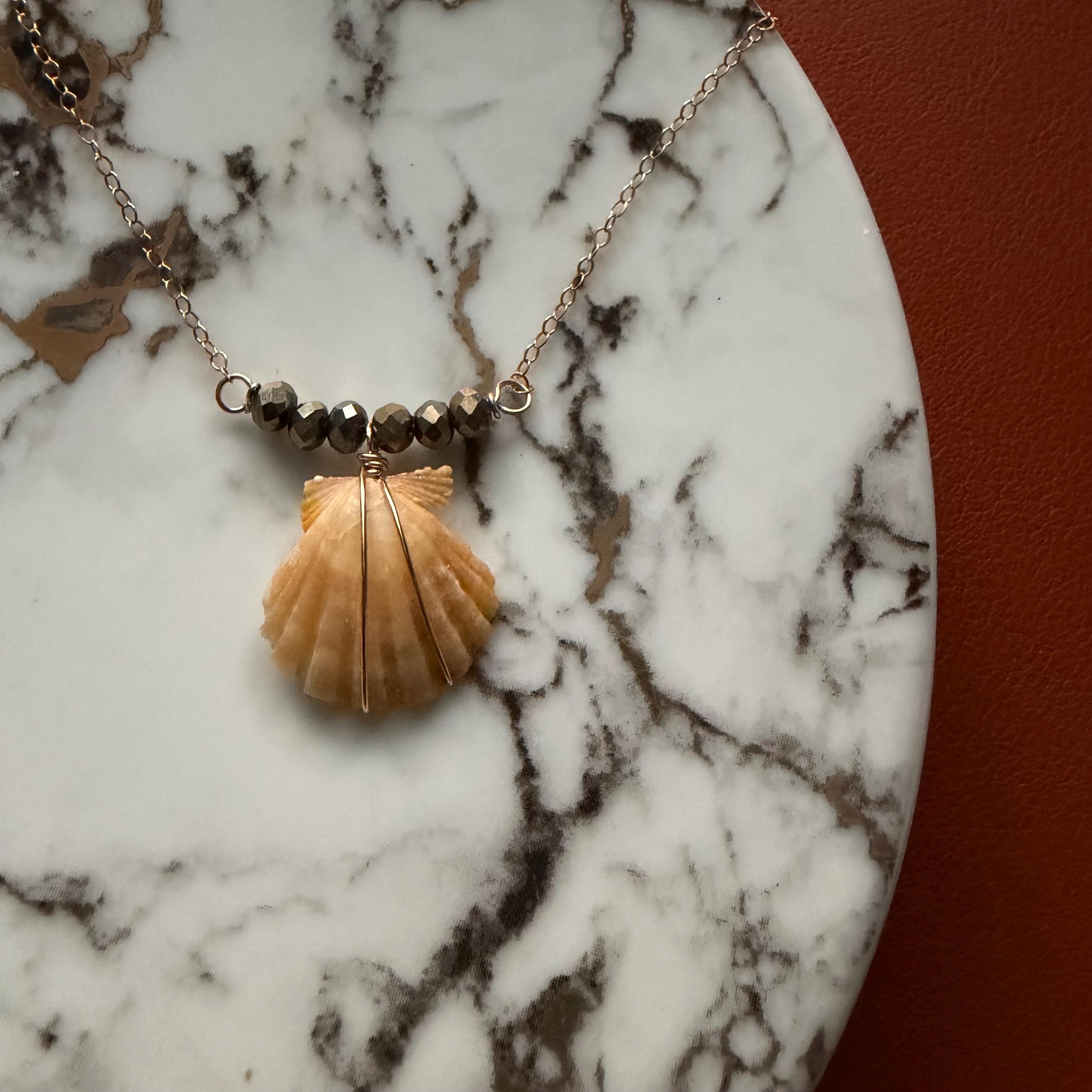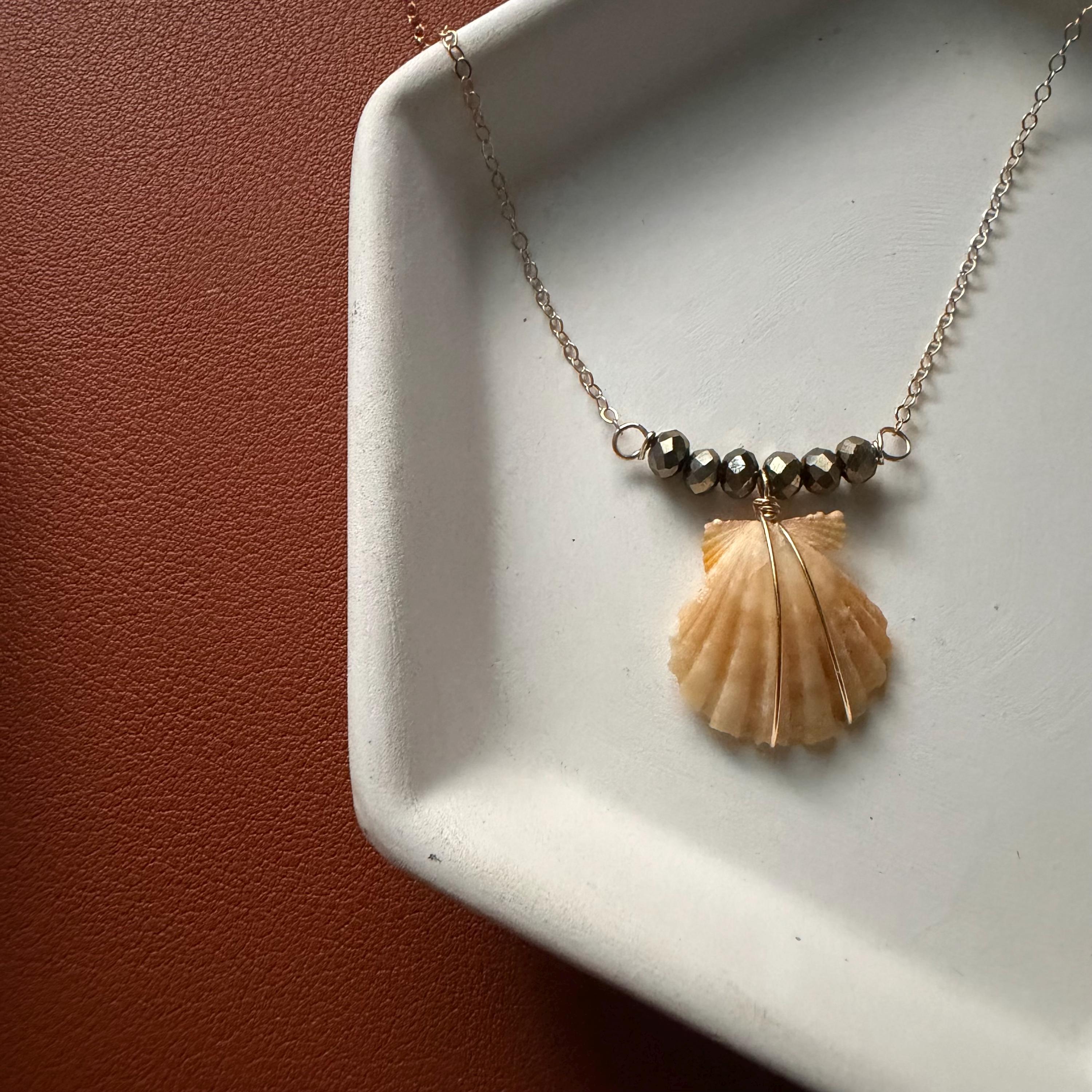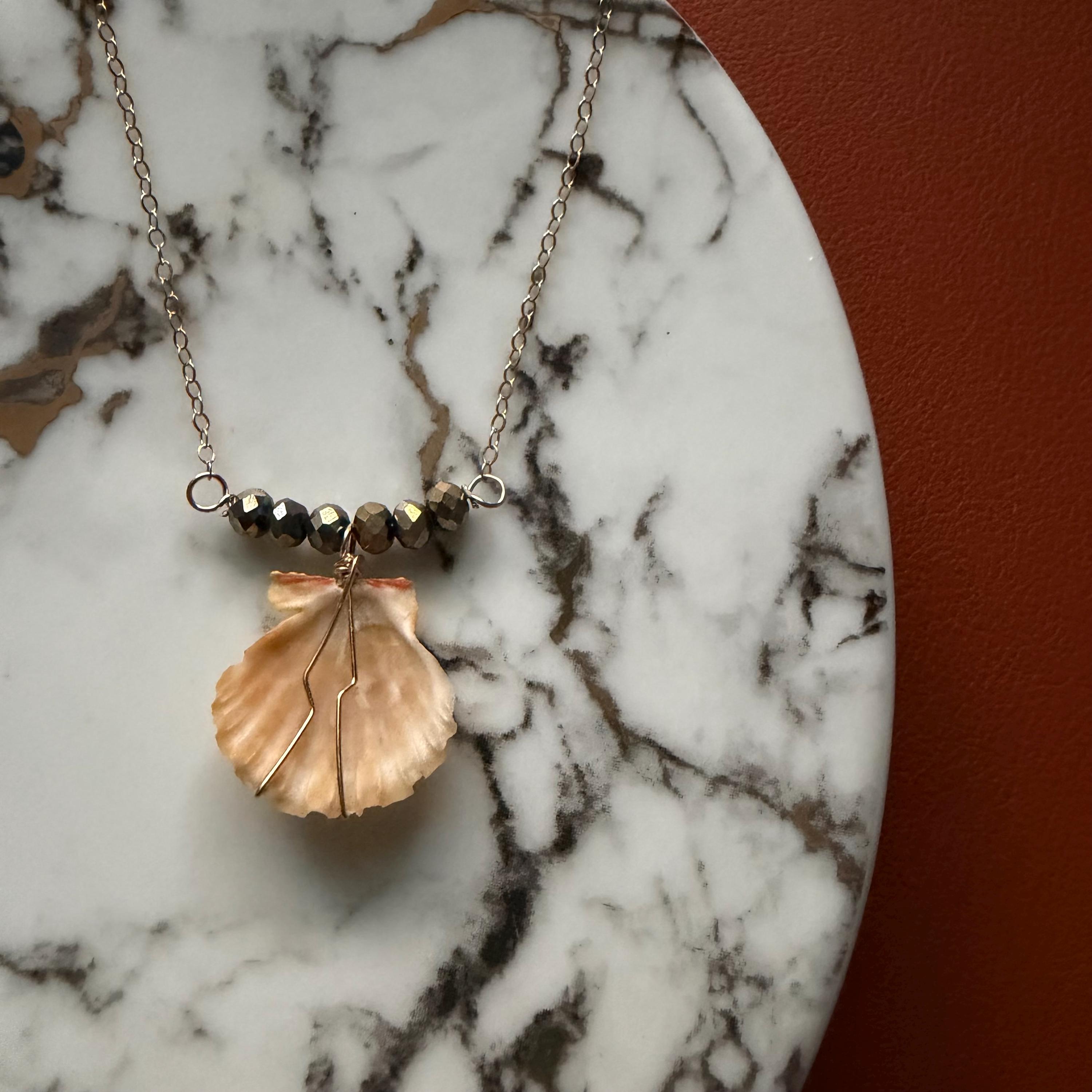 Ihe'po Sunrise Shell Necklace with Dark accent beads in 14K Gold Filled