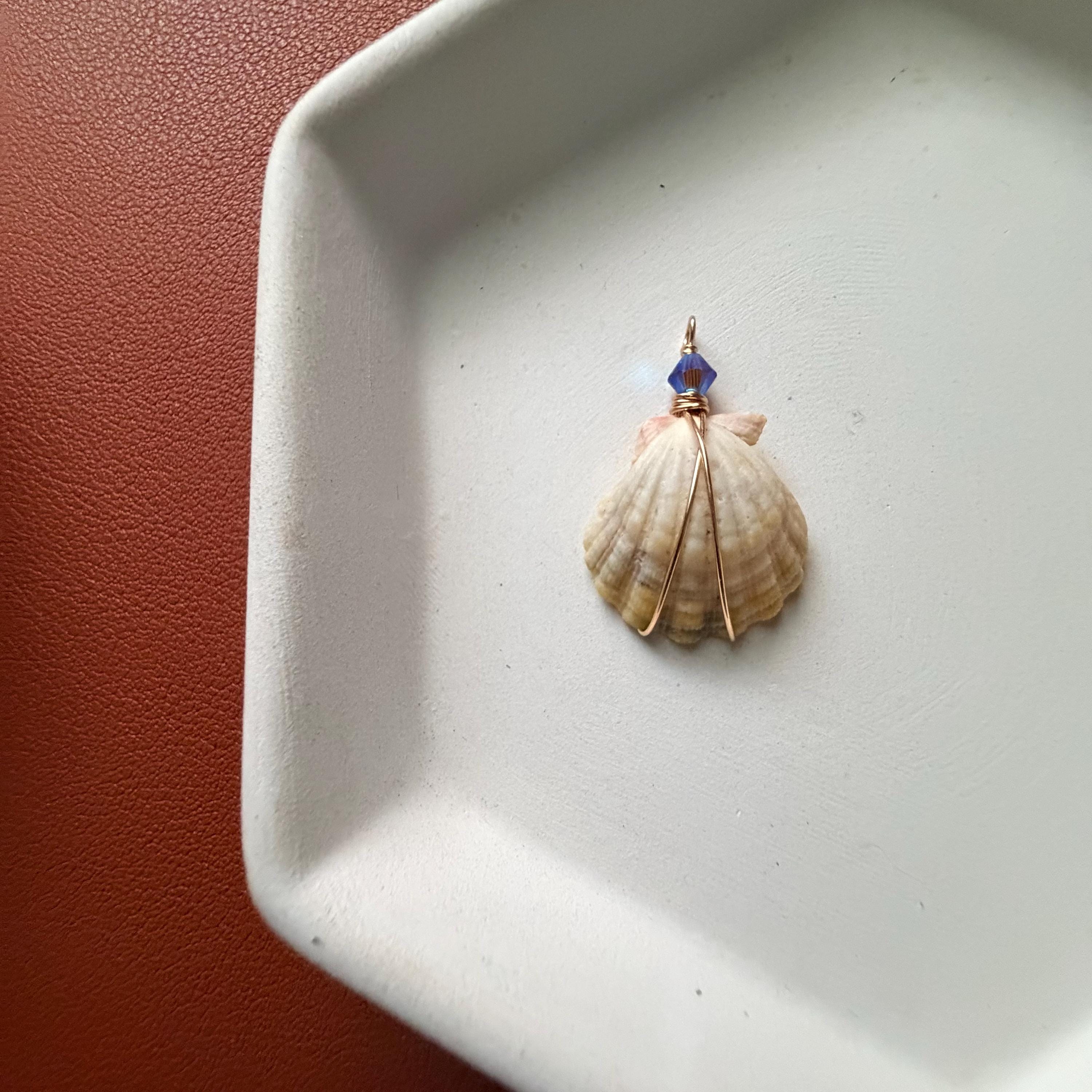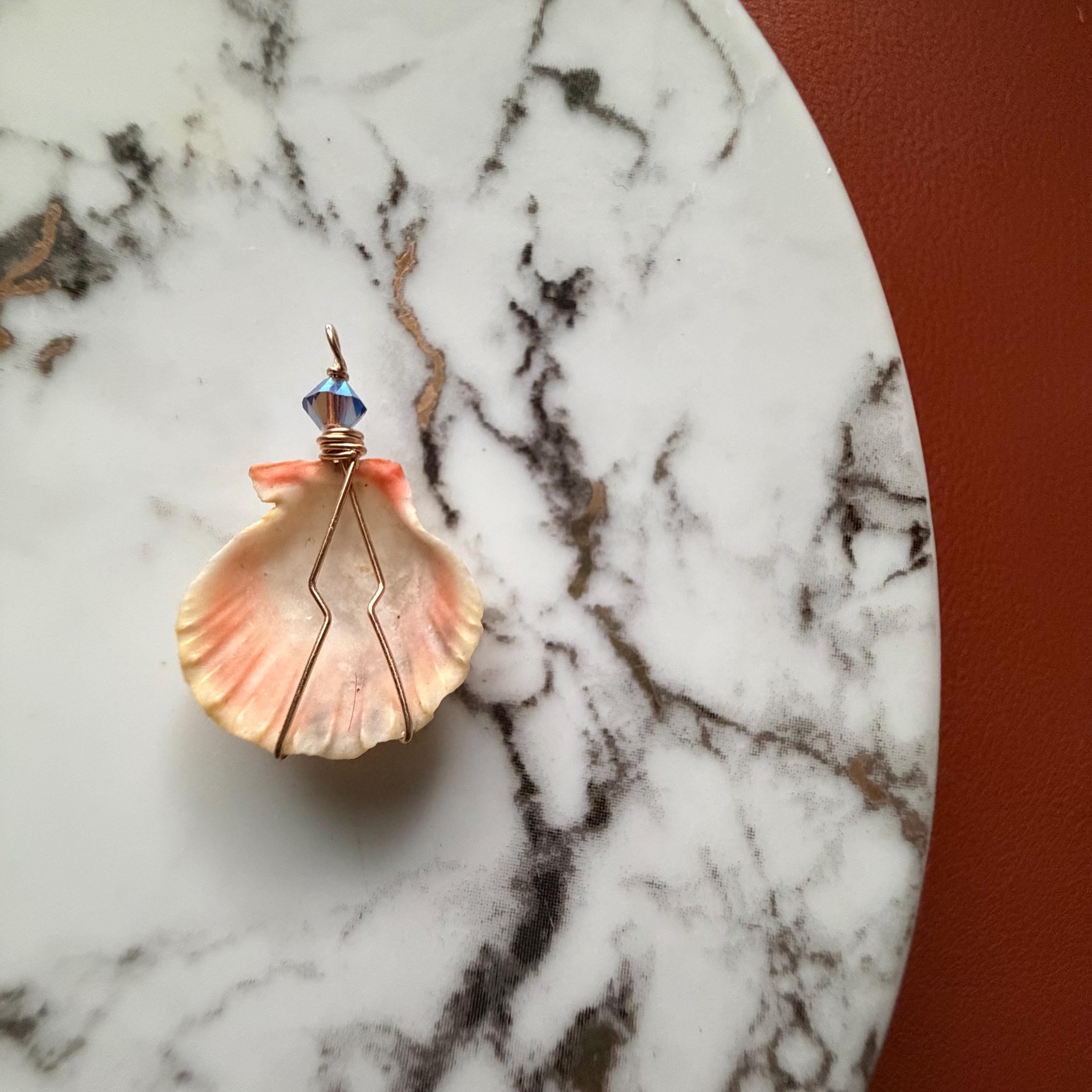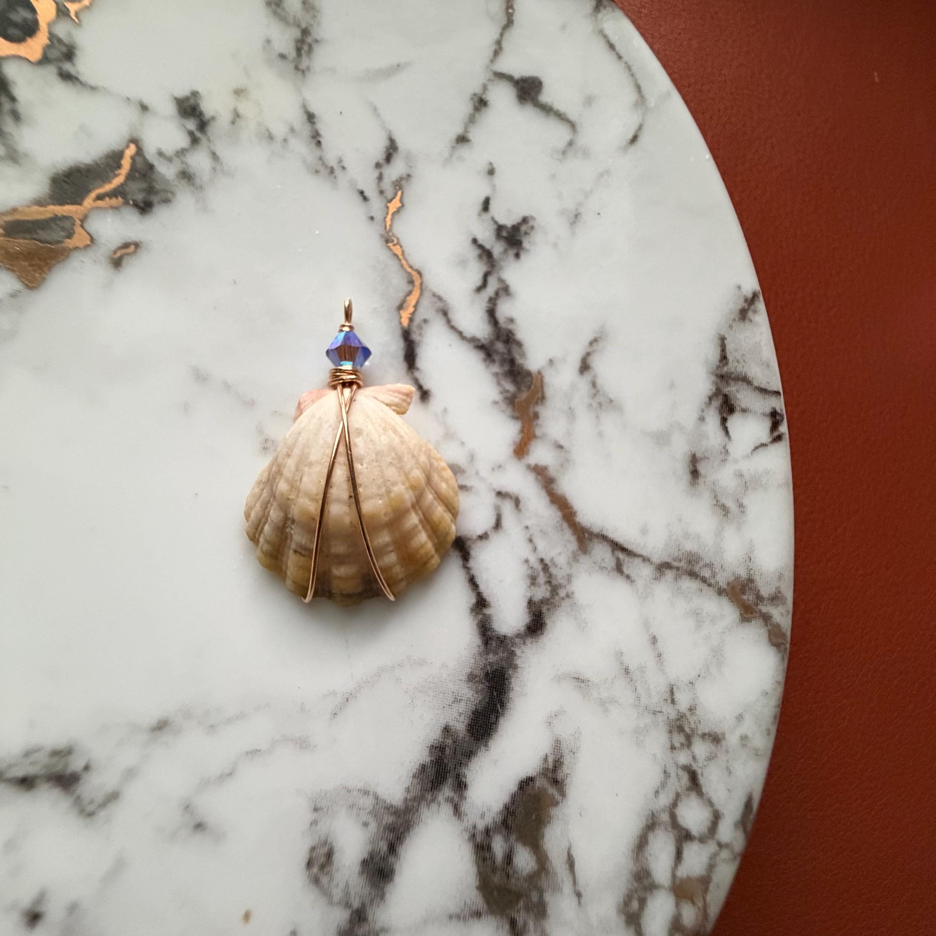 Northshore Sunrise shell necklace with a simple Blue accent. Sunrise shell is Nickel Size and is set in 14k Gold Filled. Can be bought as a necklace or pendant alone. This item is one of a kind contact me for personal pieces!